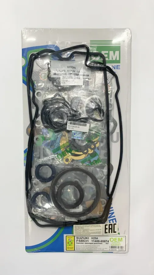 В комплект входят все необходимые уплотнители, графитовая прокладка ГБЦ, прокладка крышки клапанов, сальники распредвала и коленвала, сальники клапана, прокладки коллекторов, уплотнения для топливной и охлаждающей системы двигателя.