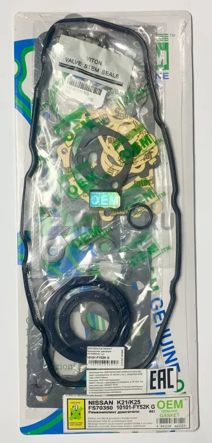 В комплект входят все необходимые уплотнители, графитовая прокладка ГБЦ, прокладка крышки клапанов, сальники распредвала и коленвала, сальники клапана, прокладки коллекторов, уплотнения для топливной и охлаждающей системы двигателя.