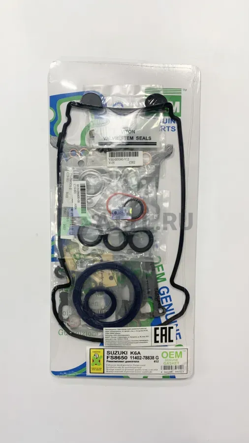 В комплект входят все необходимые уплотнители, графитовая прокладка ГБЦ, прокладка крышки клапанов, сальники распредвала и коленвала, сальники клапана, прокладки коллекторов, уплотнения для топливной и охлаждающей системы двигателя.